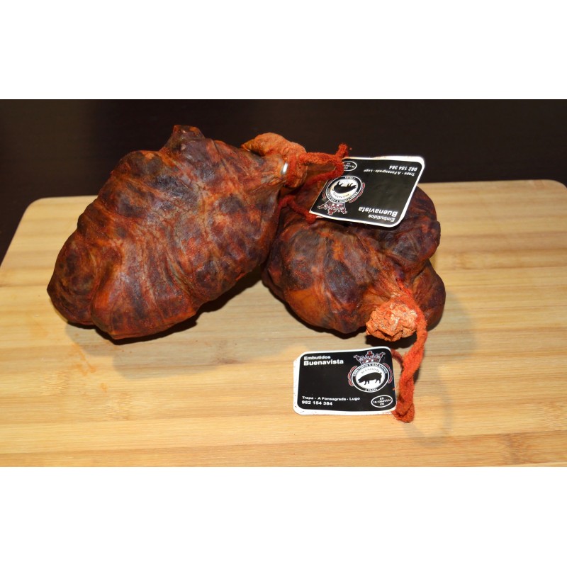 El butelo de Embutidos Buenavista es una exquisitez que combina la tradición artesanal con la calidad de ingredientes premium. Este embutido se elabora cuidadosamente con carne de cerdo blanco y cerdo celta, garantizando un sabor auténtico y una textura única. Su proceso de salazón y curado se realiza de manera artesanal, permitiendo que los sabores se desarrollen plenamente. Con cada bocado, se aprecian las capas de sabores complejos y la jugosidad que caracteriza a este producto gourmet. Sin añadidos artificiales ni conservantes, el butelo de Embutidos Buenavista es una elección ideal para los amantes de la charcutería de alta calidad.